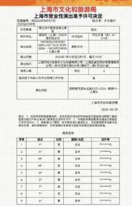 而根據上海市文化和旅遊局在10月下旬公開的演出許可批文,原定上海公演將會於1月31日至2月1日舉行,即是會有兩場演出。