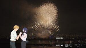 此外,官方亦同步公開了為感謝劇場版片尾曲「JANE DOE」熱烈迴響而舉辦的特別音樂煙火活動存檔影像。該曲由米津玄師與宇多田光共同演唱,自推出以來廣受好評。音樂煙火活動自去年12月20日起於東京台場舉行,並與「台場彩虹煙火」合作登場,在「IRIS OUT」與「JANE DOE」的音樂襯托下,繽紛煙火點亮夜空。