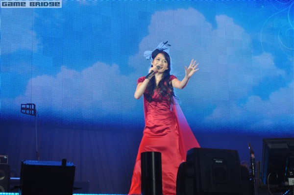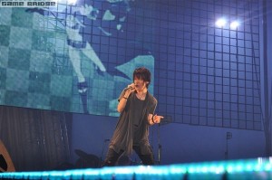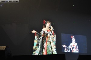 接著下來舞台上出現了兩個手持日本刀的男人在「毆鬥」,一把極具穿透性的漂亮女聲唱出《戦国BASARA3》Ending「逆光」,這位就是大家也熟識的石川智晶小姐。唱完這首後,石川在MC裡還說笑,因為這是《戦国BASARA3》的歌,作品裡面有很多有型的帥哥,只可惜都不是男朋友,全場再爆笑(編按:想不到石川也會搞這樣的gag呀…)。石川智晶演唱的第二曲則是插入曲「淚腺」。