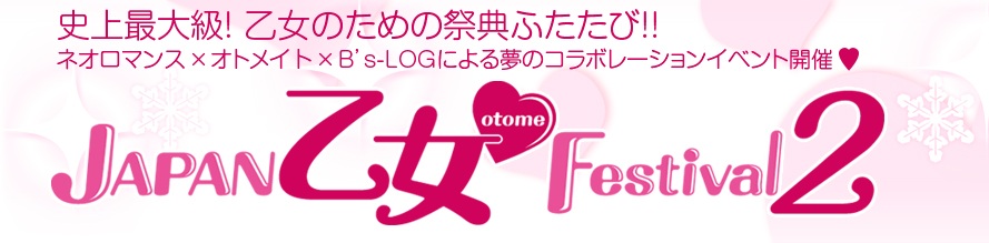創造出「遙遠時空」,「金色琴弦」,「安琪莉可」等等無數經典乙女系遊戲的KOEI光榮旗下分支 NEO ROMANCE和創造出最近大受歡迎的「薄櫻鬼」,「猛烈使和王子殿下」,並且已經預定四月將動畫化的「緋色之碎片」等乙女向熱門遊戲的 OTOMATE。再加上所有乙女都不陌生的乙女向雜誌 B’s-LOG 再次合作共同舉行的乙女祭典,並稱為日本史上最大最豪華的乙女向 EVENT宣布再次舉行,並命名為「JAPAN 乙女・Festival 2」。