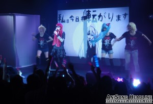 開演時秋赤音以較中性的打扮示人,令台下觀眾不斷歡呼叫喊。隨後秋赤音更即席示範繪畫,上年動漫節畫了初音,今回則畫了雙子。繪畫期間與動漫節一樣,有舞者跳舞助興。舞者出色的舞蹈,觀眾也非常受落,不時揮動螢光棒,絕無半點冷場。